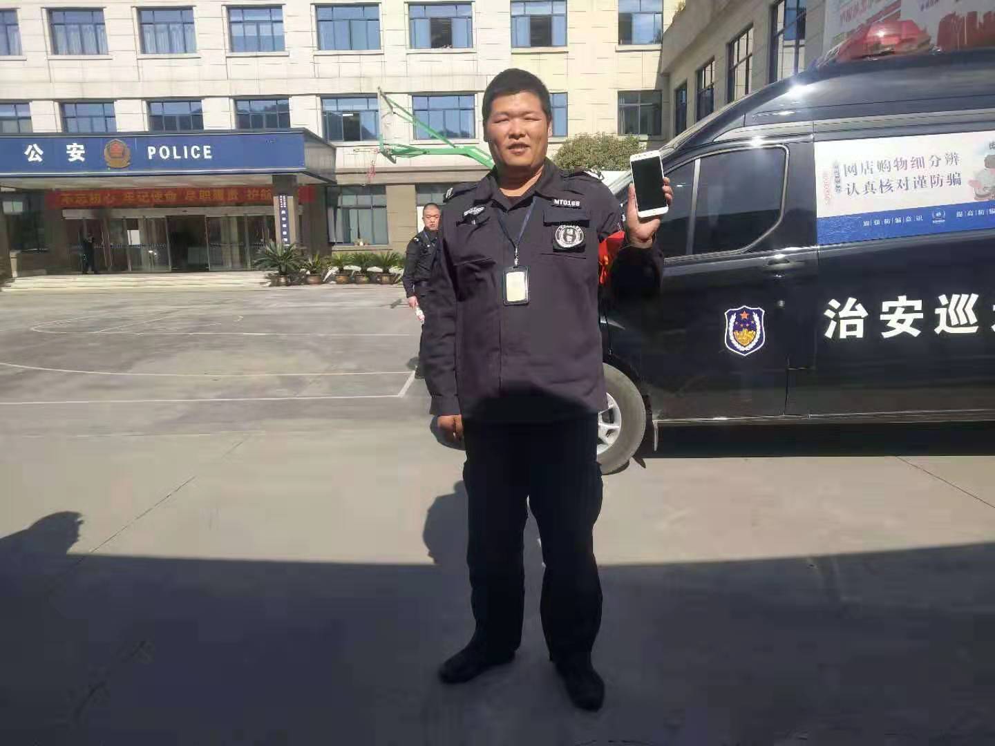 2019年11月15日11:20,閑林派出所出警車102車在天目山西路加油站加完油準備返回,車子剛剛駛出加油站,隨車的浙江民泰駐閑林輔警項目組長楊有福發(fā)現(xiàn)路邊有一部手機,且周邊無人,隨即停車查看。小楊把手機帶回所里,交給值班民警。隨即民警便聯(lián)系失主,將手機完好無損地交還給失主。