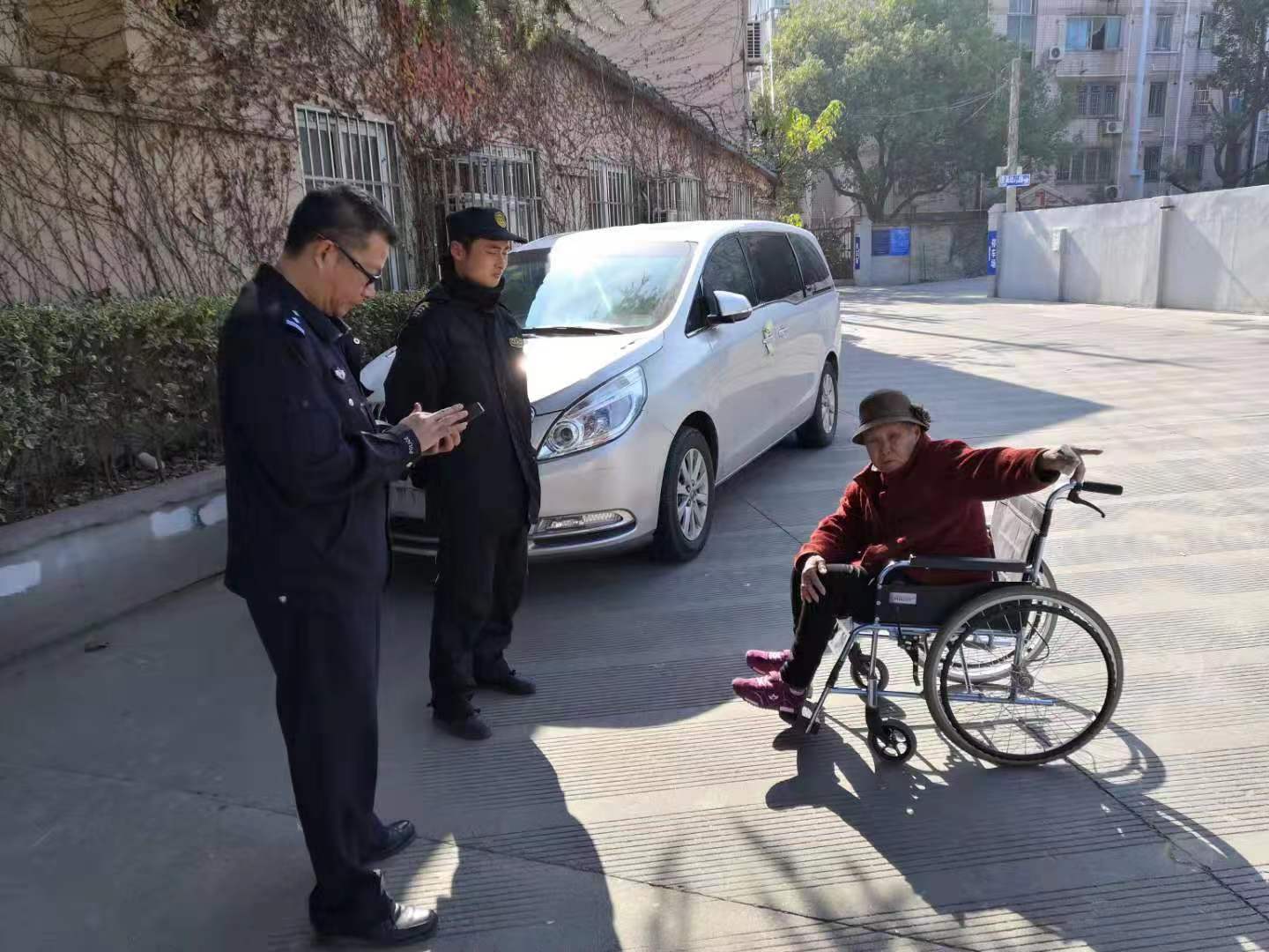 當(dāng)天上午10點(diǎn)左右,侯震宇巡邏至康沈路佰田大富苑小區(qū)門口時(shí),看到一位年邁的老人神情不安地四處張望。小侯趕緊走上去詢問(wèn)情況——老人年紀(jì)大了,分不清回家的方向,也沒有力氣推輪椅了。侯震宇立即將此事回匯報(bào)給派出所值班室。