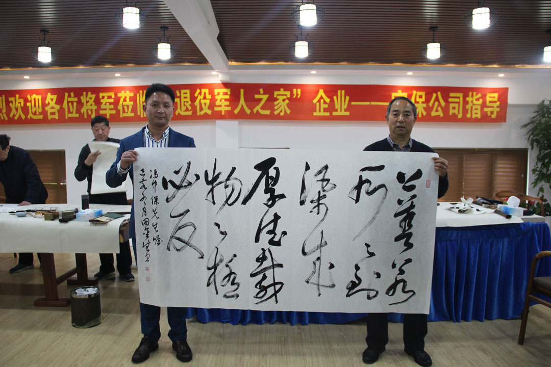 蒞臨公司的10位將軍平均年齡超過70歲,為國家的國防事業(yè)和軍隊建設立下了汗馬功勞。如今他們離休放下槍桿子,拿起筆桿子,發(fā)揮余熱,依然關心關注退役軍人,寄情書法弘揚正能量,很值得令人欽佩和敬仰!