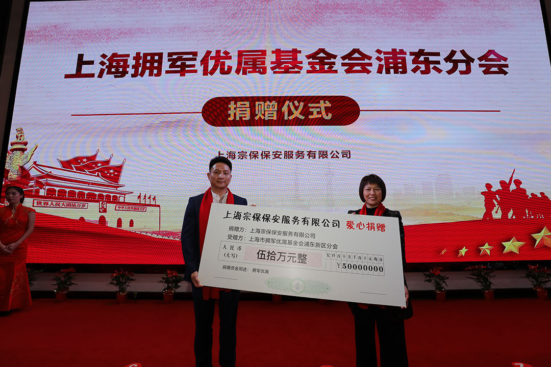 12月28日,在公司2019年年會上,馮中保董事長代表公司向上海擁軍優(yōu)屬基金會浦東分會捐款50萬元,用于幫助解決退役軍人實際困難。