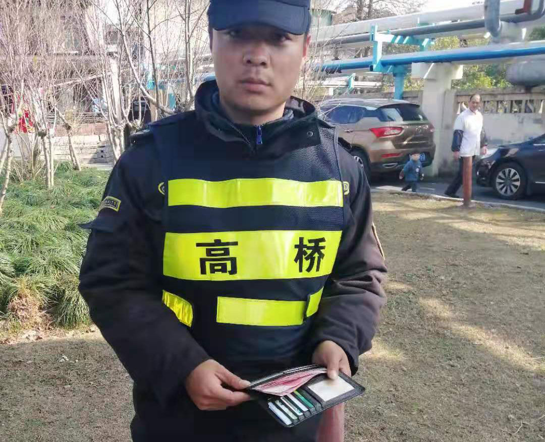 2020年1月6日,宗保公司駐高橋市容項(xiàng)目隊(duì)員王金奇,巡查至浦東北路草高路交叉口時(shí),發(fā)現(xiàn)路邊有一個(gè)錢(qián)包,拍照取證后撿起清點(diǎn),錢(qián)包內(nèi)有現(xiàn)金1300元、身份證一張、駕駛證一本、各類銀行卡8張。