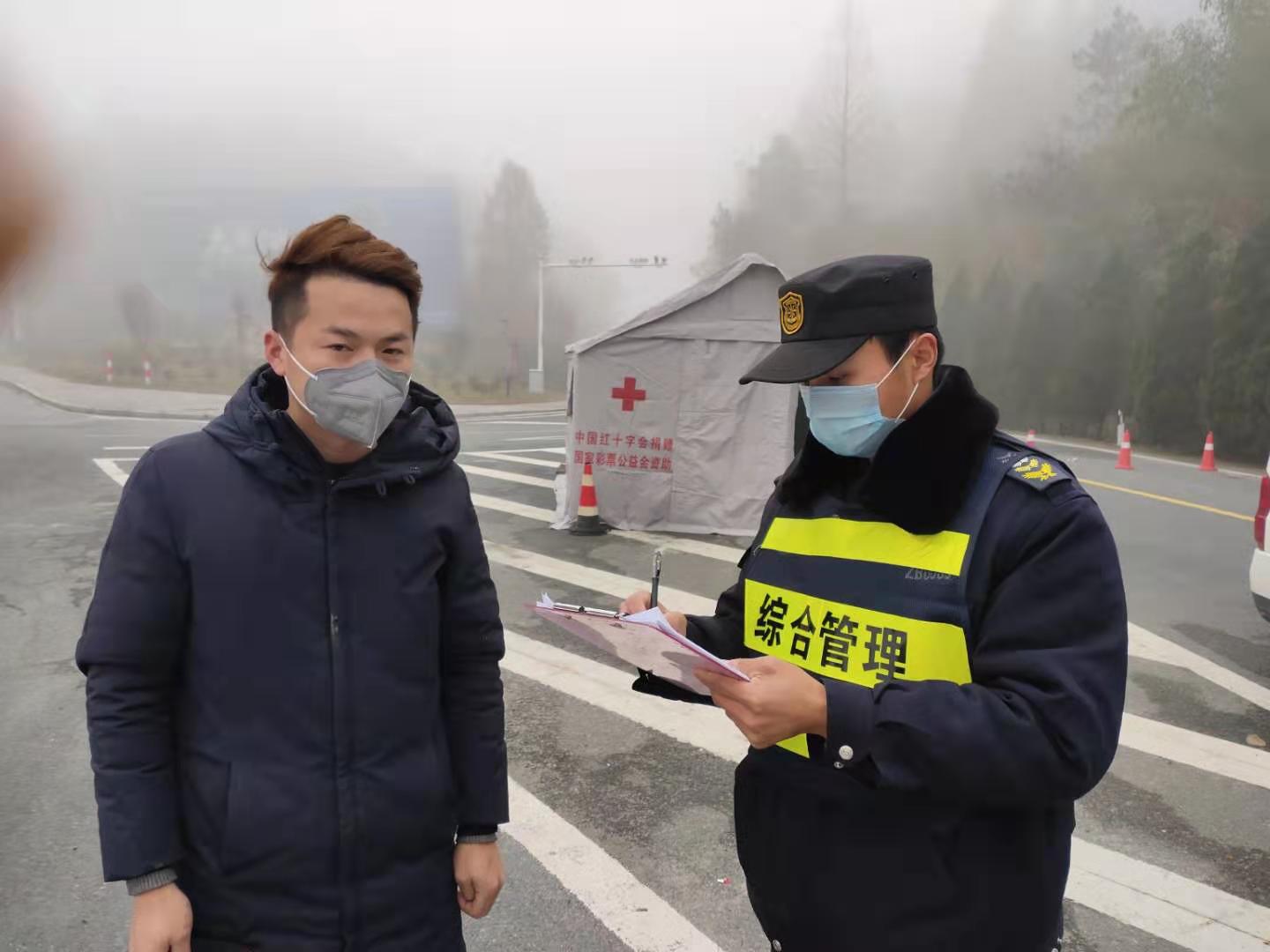 疫情防控中,劉盛配合政府相關(guān)部門維護(hù)交通秩序,設(shè)卡排查車輛,檢測(cè)司乘人員體溫,做好數(shù)據(jù)登記。