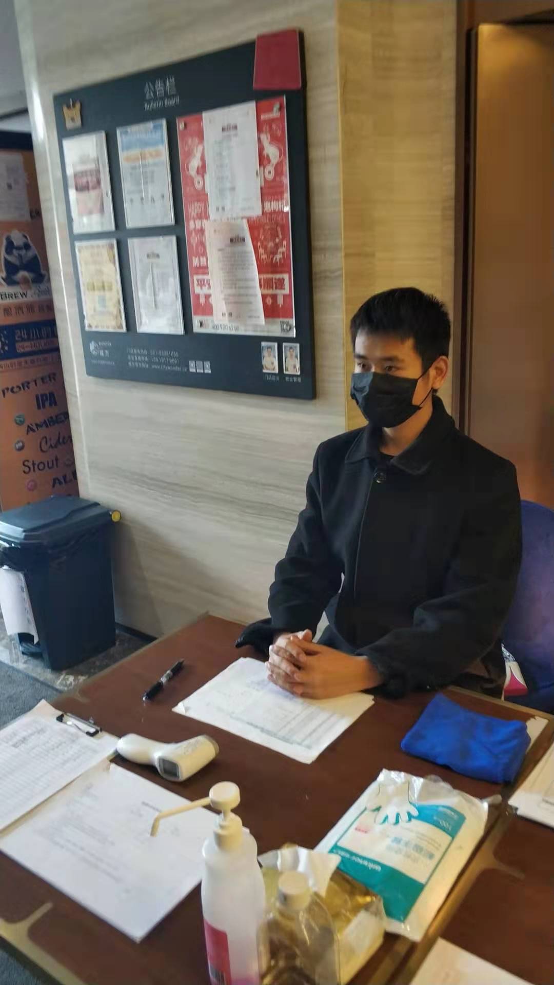 疫情防控中,孫超與隊(duì)友一起每天負(fù)責(zé)大廈公共區(qū)域消毒、保持樓道通風(fēng)、檢測(cè)進(jìn)入大廈人員體溫、登記外地來(lái)滬人員信息、宣傳疫情防護(hù)知識(shí)。