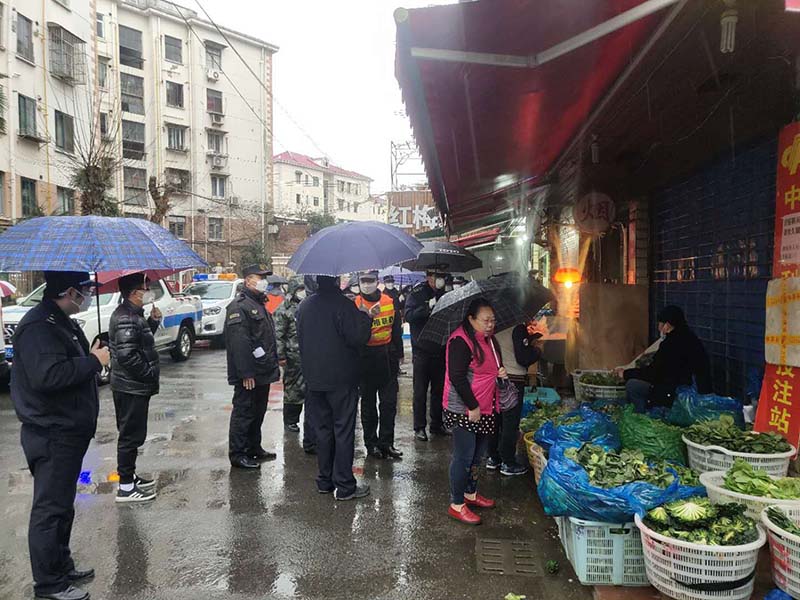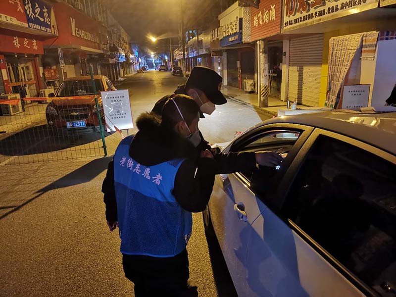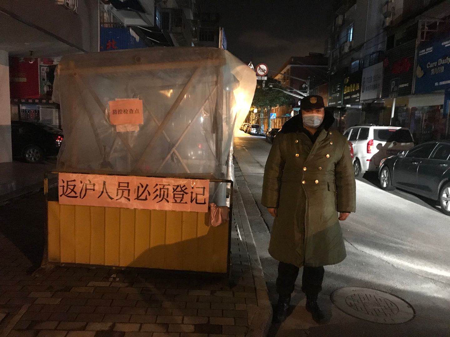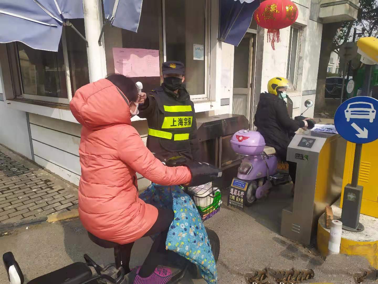 堅(jiān)守在惠南鎮(zhèn)小區(qū)門口