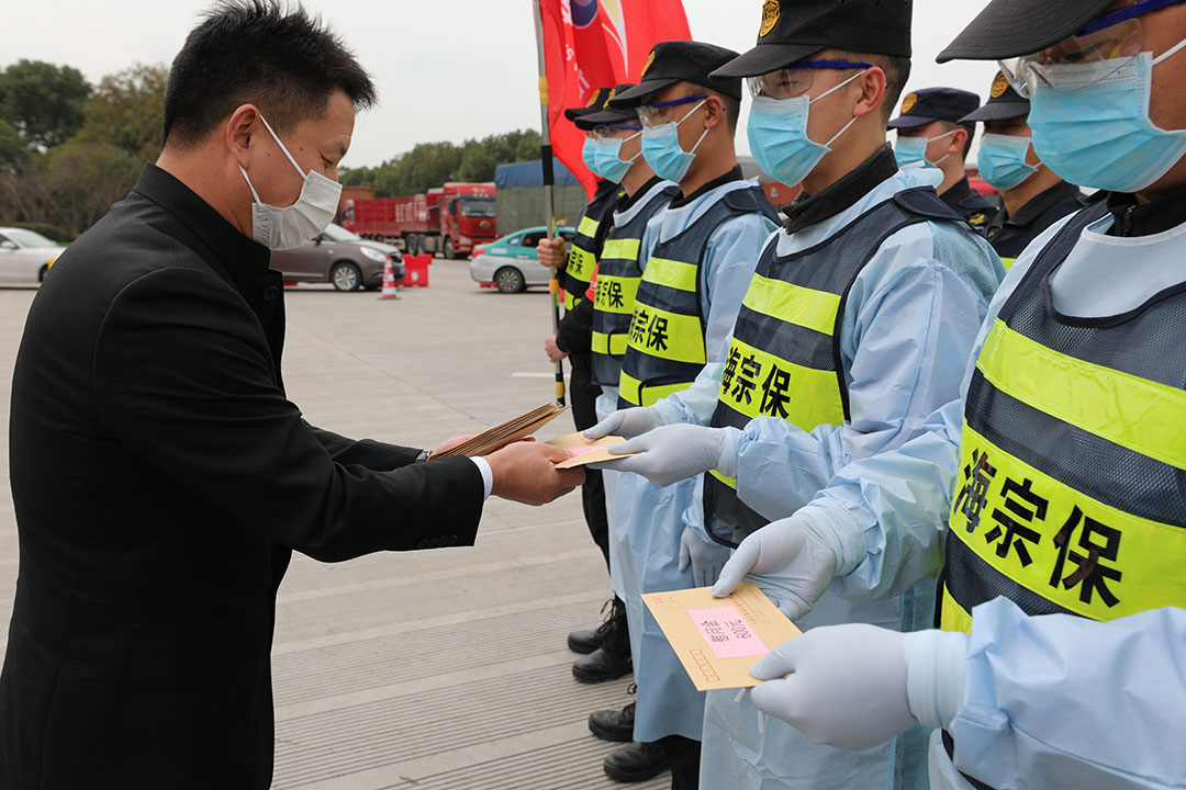 3月3日12時30許,宗保公司領(lǐng)導(dǎo)到G60楓涇收費(fèi)站看望慰問奮戰(zhàn)在疫情防控一線的公司退役軍人突擊隊隊員。松江區(qū)退役軍人事務(wù)局局長丁汀等領(lǐng)導(dǎo)到現(xiàn)場,一同參與慰問。