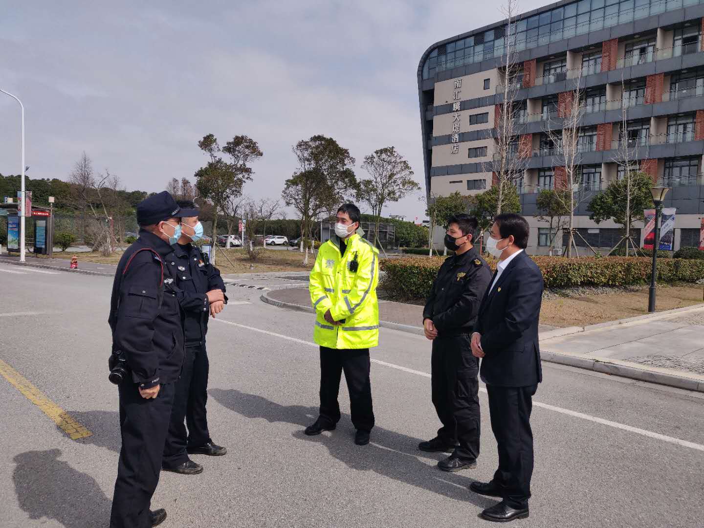 3月5日,惠南鎮(zhèn)黨委書記潘秀紅、政法書記沈列勇、世博公安處大隊長張華到工作一線檢查指導(dǎo),看望勉勵參與疫情防控的宗保員工。