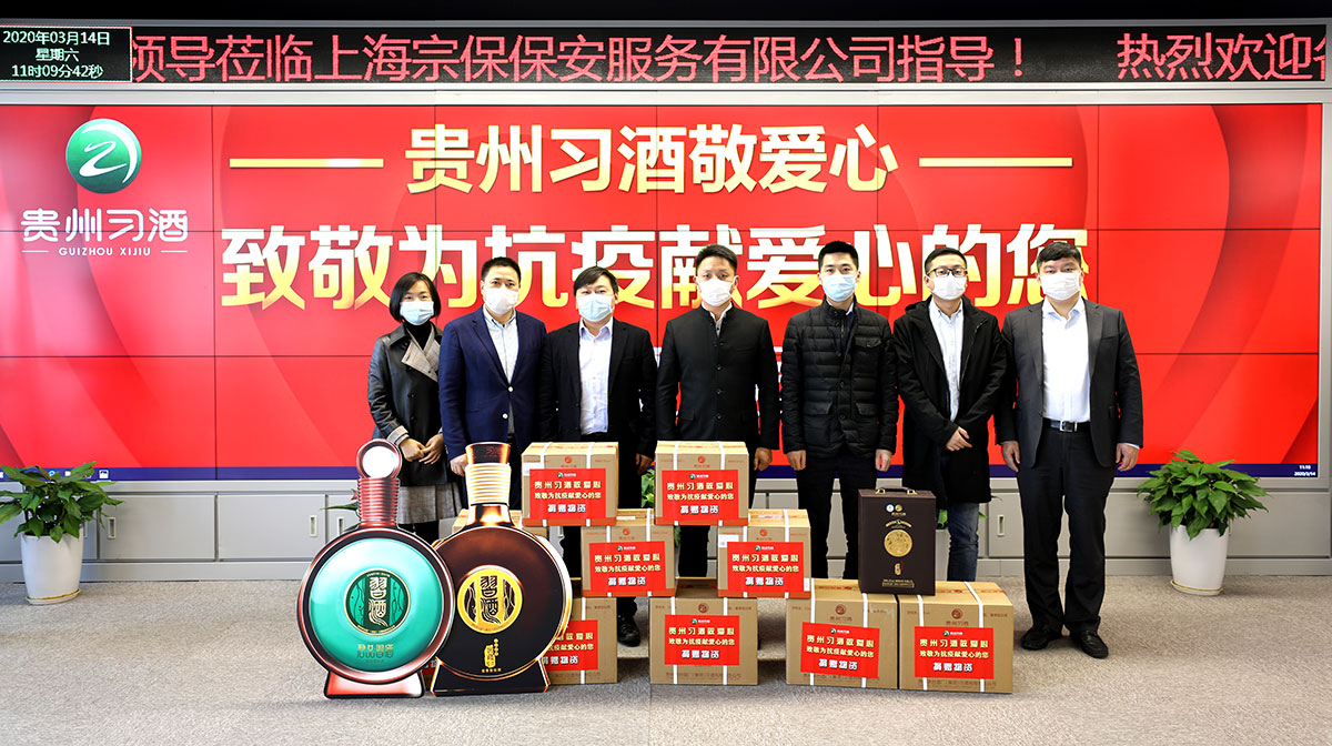 3月14日上午,茅臺(tái)集團(tuán)上海辦事處副主任陳我權(quán),貴州習(xí)酒銷售有限責(zé)任公司上海區(qū)總經(jīng)理顏軍,百川名品供應(yīng)鏈(上海)有限公司總經(jīng)理宮劍等一行來(lái)到宗保公司贈(zèng)送習(xí)酒,慰問(wèn)參與疫情防控的宗保人。
