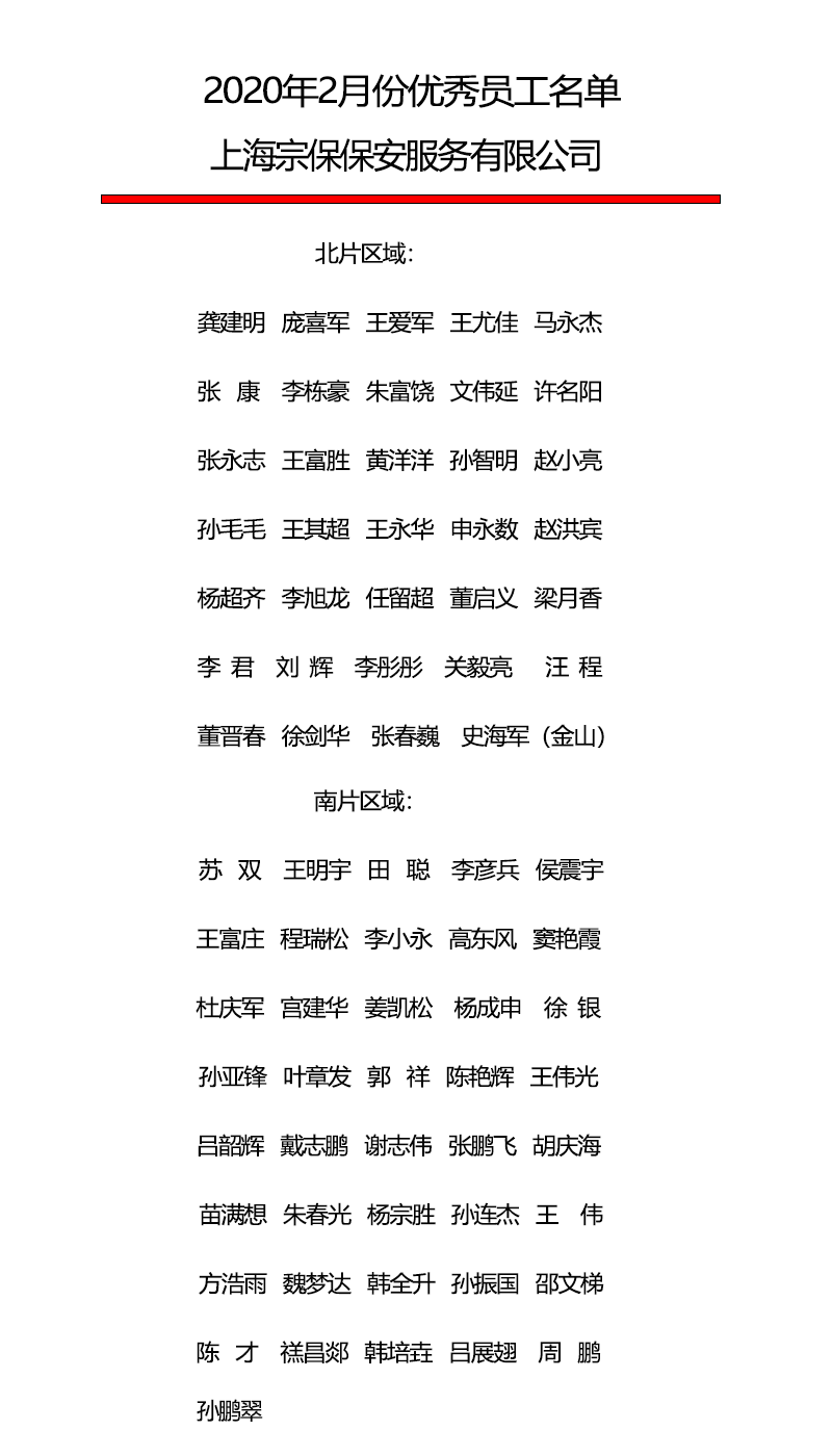 二月份新冠肺炎疫情蔓延,公司在克服因疫情返鄉(xiāng)員工無法按時返回,人員吃緊的情況下,在崗在位的員工發(fā)揚無私奉獻(xiàn)、忘我工作、連續(xù)奮戰(zhàn)的精神,配合甲方出色地完成了疫情防控工作,其中涌現(xiàn)出了一批優(yōu)秀員工。為表彰先進(jìn),樹立典型,激勵后進(jìn),在各項目推薦,各部門審定把關(guān)的基礎(chǔ)上,經(jīng)公司董事會研究,決定對2月份工作表現(xiàn)優(yōu)異的龔建明等110名優(yōu)秀員工,予以通報表彰獎勵(獎金已隨二月份工資發(fā)放)。