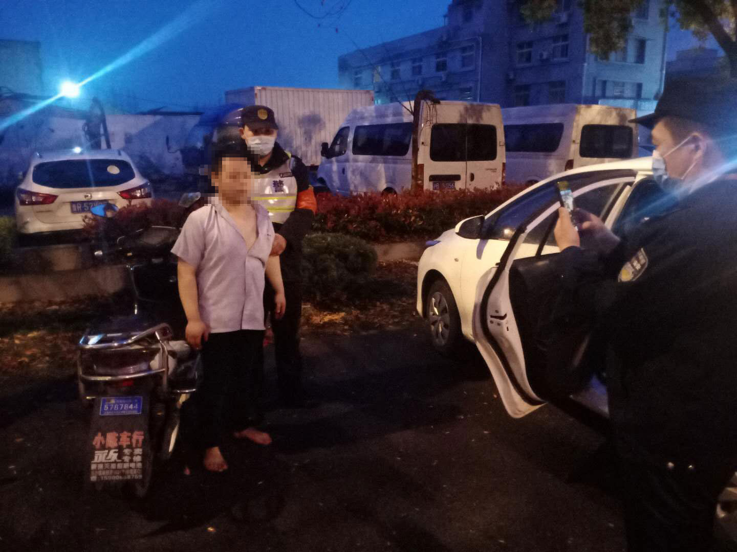 3月26日凌晨5點(diǎn)10分,宗保保安公司駐孫橋派出所輔警項(xiàng)目隊(duì)員孫魁、邵輝巡邏至孫橋路軍民路時,發(fā)現(xiàn)一男子推著一輛電瓶車,神色慌張、形跡可疑。兩名隊(duì)員隨即上前詢問,該男子支支吾吾,說話前言不搭后語,所述不能自圓其說。兩名隊(duì)員憑著長期的工作經(jīng)驗(yàn)、職業(yè)的敏感性,斷定此人有一定嫌疑,于是就先設(shè)法穩(wěn)住該男子,并向聯(lián)防隊(duì)趙徑達(dá)隊(duì)長報(bào)告。