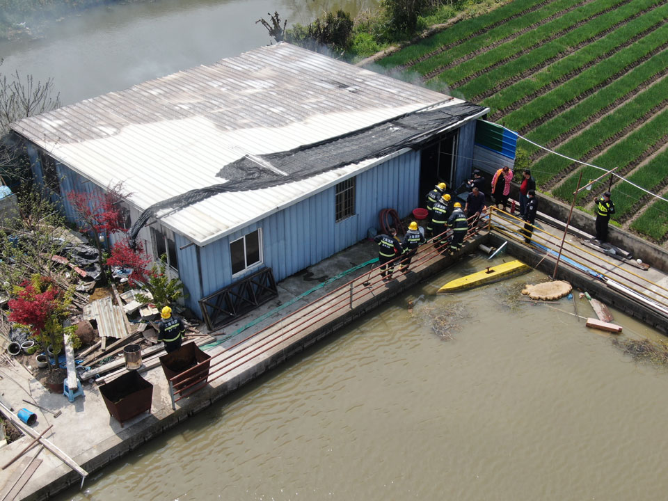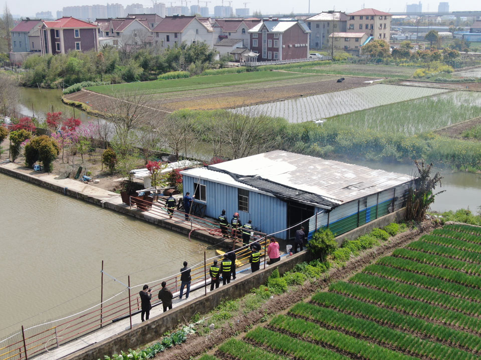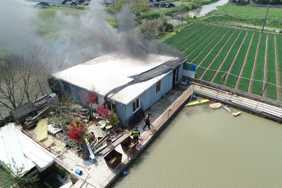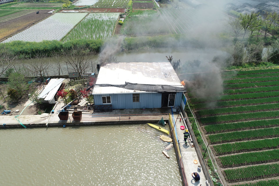 4月1日上午,宗保公司的無人機(jī)飛手王凱奇、王鵬飛在浦東新區(qū)宣橋鎮(zhèn)一地塊上空?qǐng)?zhí)行無人機(jī)三維建模航拍任務(wù),無人機(jī)在返航過程中發(fā)現(xiàn)該地塊有一處臨時(shí)搭建的房子冒著濃煙?!安缓茫i飛,稻田旁邊的房子像是著火了,趕快通知地塊看守的隊(duì)員先去看看情況?!蓖鮿P奇一邊穩(wěn)穩(wěn)地操控著無人機(jī),一邊焦急地對(duì)身邊的王鵬飛說。