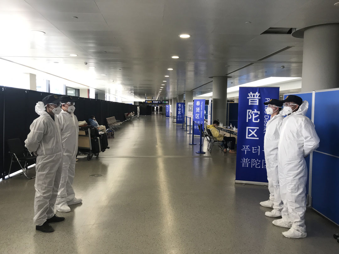 截至4月30日,宗保公司參與疫情防控共出動人員43.3萬多人次,在19座寺廟(庵)勸離香客,49處路口設(shè)卡,6個地鐵站口檢測進出地鐵站人員體溫,3個高鐵站檢測出站旅客體溫,浦東、虹橋2個機場4個候機樓秩序維護,146個小區(qū)門口檢測進入小區(qū)人員體溫,76個集中隔離點值班守護,930多人次接送隔離人員,214戶居家隔離保障,121個藥店秩序維持,配合查處活禽交易236起,盤查人員83.8萬多人次、盤查車輛21.8萬多車次。