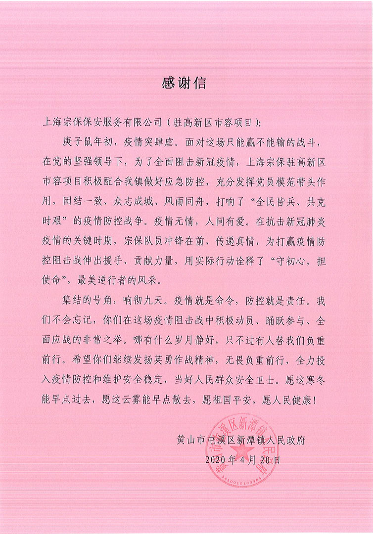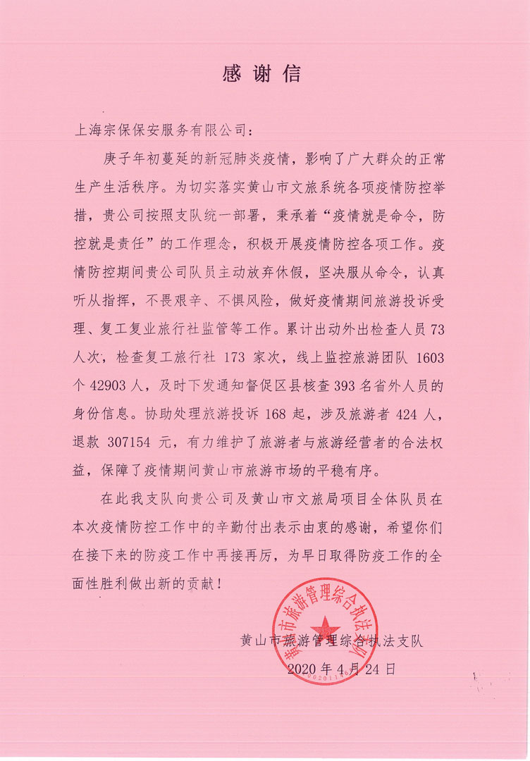 疫情發(fā)生后,宗保人主動作為,配合各級政府落實各項疫情防控措施,積極做好春節(jié)期間勸離寺廟(庵)香客,保障居家隔離、集中隔離點隔離,查處活禽出售,核查餐飲店關(guān)閉情況,盤查車輛,排查疫區(qū)來滬人員,接送隔離人員,檢查娛樂場所、人員密集場所等落實關(guān)閉要求情況,檢測進菜場人員體溫,排查賓館、出租房等內(nèi)的疫區(qū)來滬人員,維護機場航站樓秩序,排查從疫區(qū)來滬的高鐵旅客,宣傳疫情防控知識,維護藥房門口排隊秩序,保障居民購買防護用品登記,進行疫情防控志愿活動等17類疫情防控輔助工作。