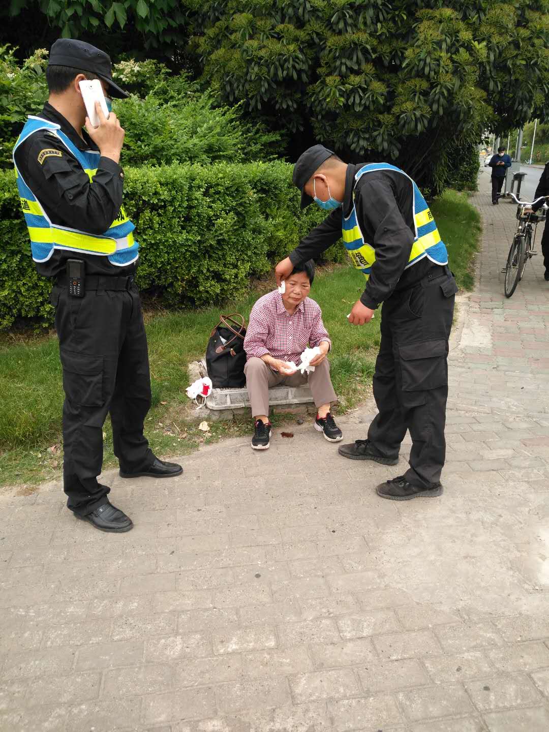 5月14日15:30左右,宗保公司駐南碼頭市容項(xiàng)目隊(duì)員甘文兵、楊召群巡查至楊高南路東三里橋路交叉口時,發(fā)現(xiàn)一位老人坐在路邊,臉上有斑斑血跡,老人只是機(jī)械性地擦著臉上的血,而周圍來來往往的人卻熟視無睹,事不關(guān)己,無人施以援手給予幫助。