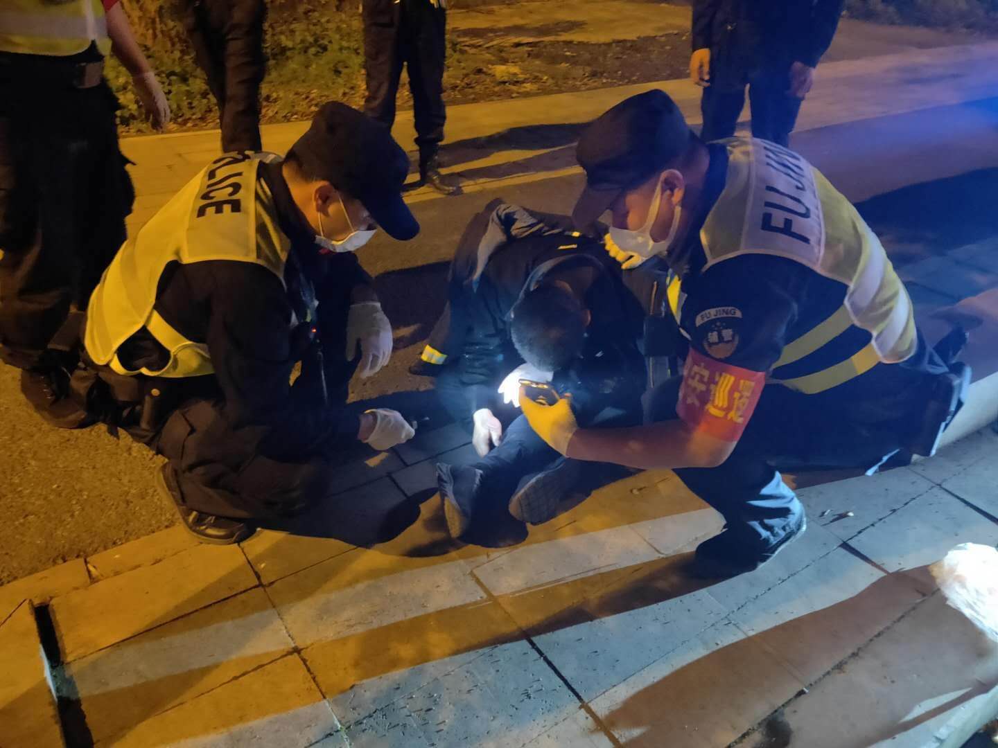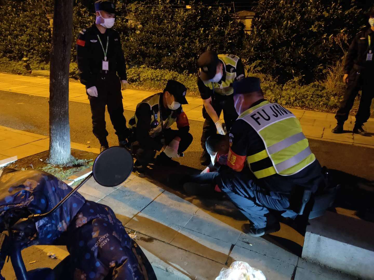 5月6日21:00左右,浙江民泰公司駐閑林輔警項(xiàng)目組長楊有福帶著隊(duì)員王發(fā)軍、郭虎虎在西溪?dú)g樂城周邊巡邏防控時(shí),在翡翠城華豐路路口發(fā)現(xiàn)一位大叔騎電瓶車摔倒在地。上前查看發(fā)現(xiàn)大叔醉酒,神志不清,還吐了一地。路上車來車往,存在很大的安全隱患,于是楊有福和隊(duì)員一起將大叔攙扶到路邊坐好,用大叔的手機(jī)聯(lián)系到其朋友童先生。