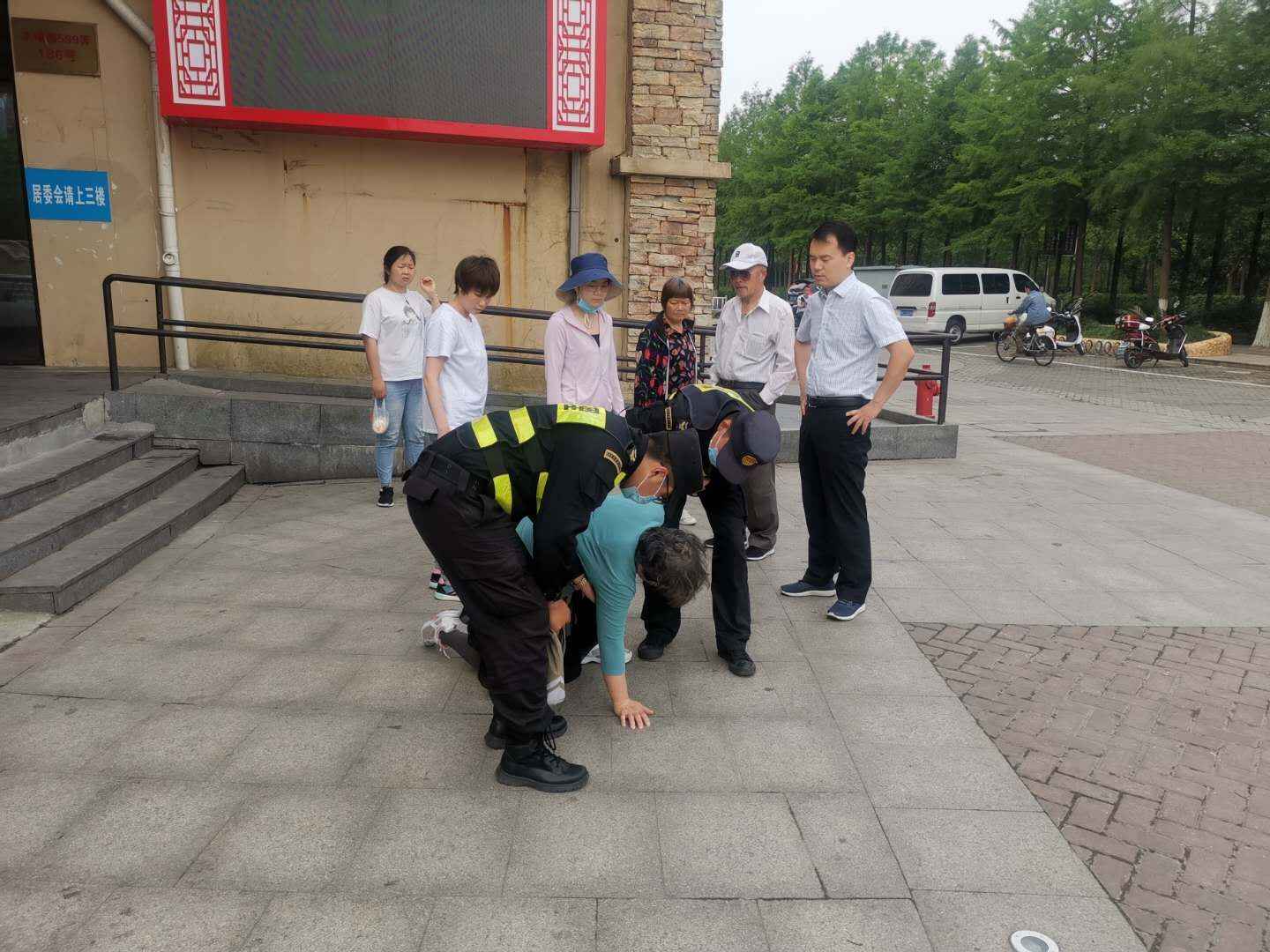 5月18號6:50,崇明長興島項目隊員張耀華在一街區(qū)華聯(lián)超市進(jìn)行日常市容管理時,突然聽到一聲大喊,循聲過去看到一位老奶奶倒在地上。小張急忙趕過去,將躺在地上疼得發(fā)抖的老奶奶扶到椅子上休息,詳細(xì)詢問了老奶奶發(fā)生的情況和親屬的聯(lián)系方式。原來老奶奶上樓梯時不小心一腳踩空,從樓梯上摔了下來。見老奶奶休息一會無大礙后,與同事一起把老奶奶送到家里。