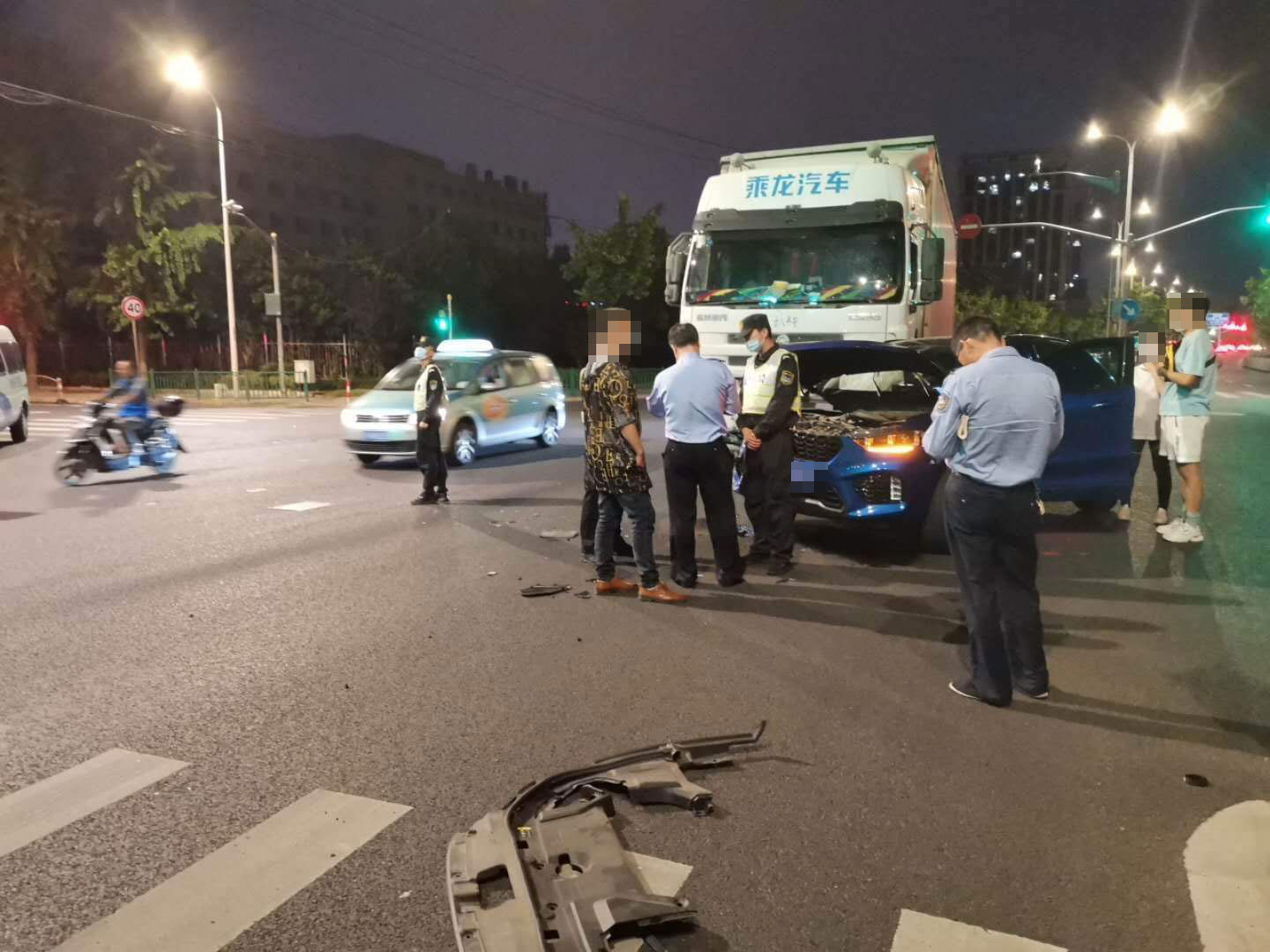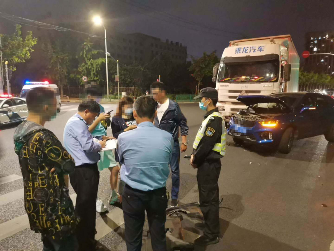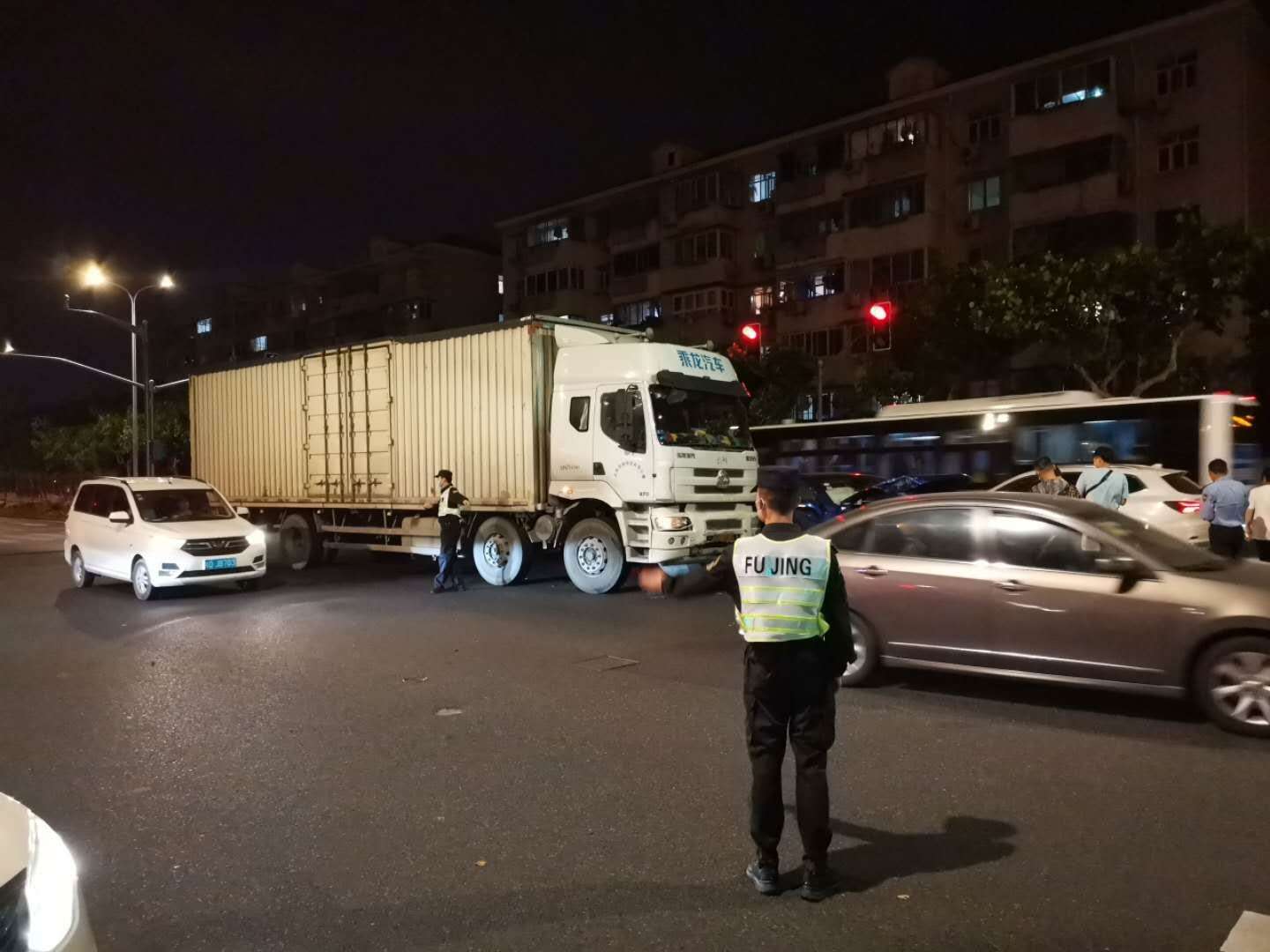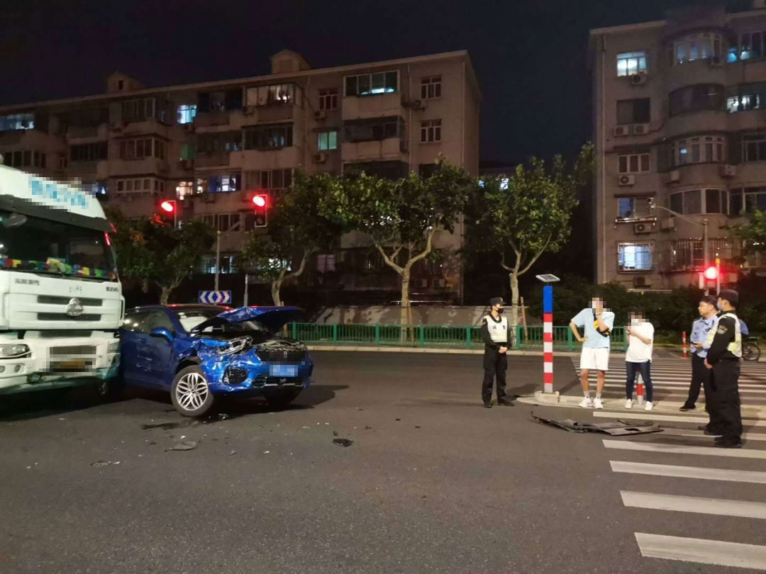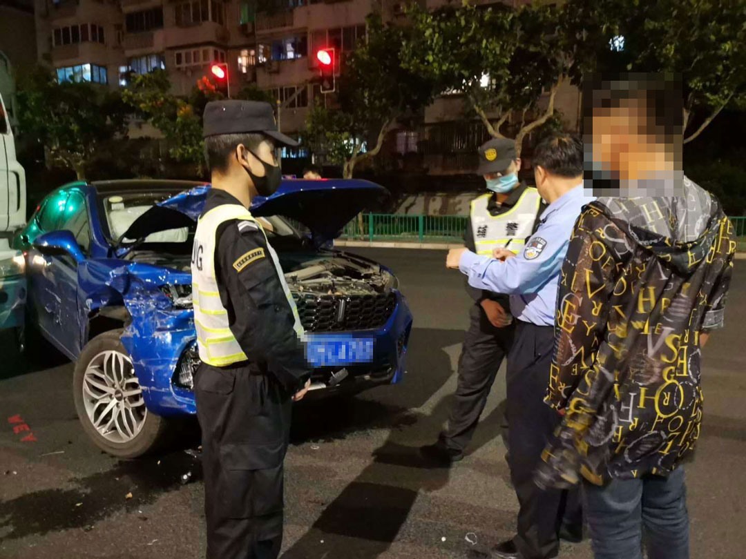 5月20日20:40,浦東新區(qū)金橋鎮(zhèn)巨峰路金京路交叉口發(fā)生一起大貨車與小汽車相撞的交通事故。宗保公司駐金橋派出所輔警項目隊員范沖、黃祥宇剛好巡邏至此,目睹了事故的全過程。