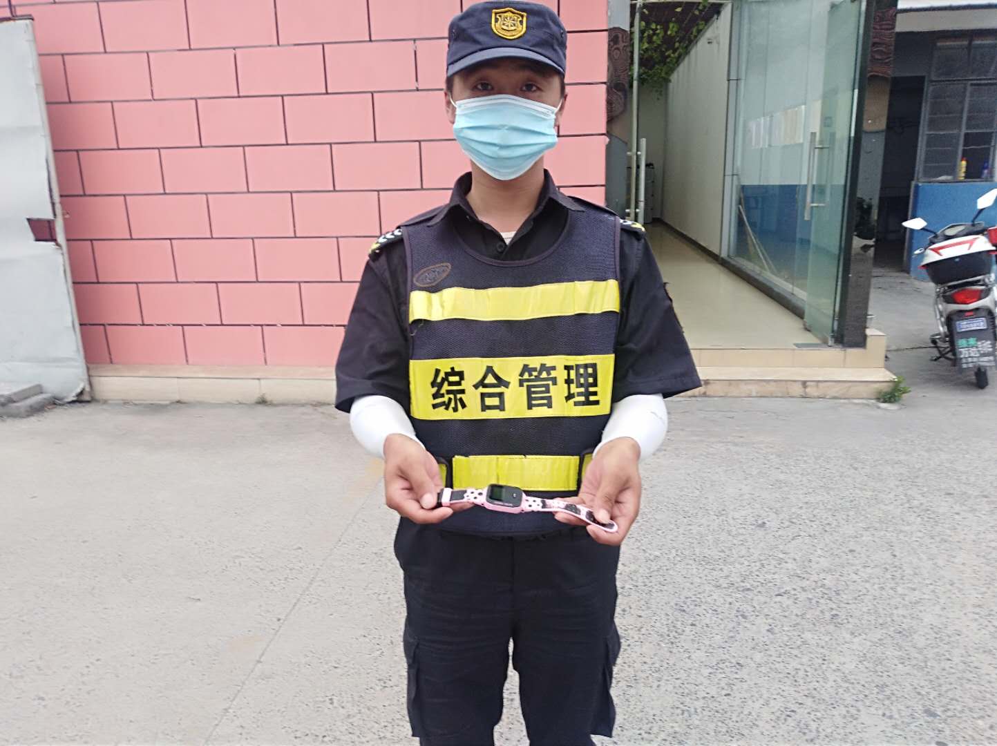 5月24日17點(diǎn),宗保公司駐三林市容項(xiàng)目隊(duì)員范金元巡邏至高青路地鐵站附近時(shí),發(fā)現(xiàn)一塊學(xué)生用智能手表,可能是附近小朋友放學(xué)路上不小心遺失的,肯定會(huì)打電話(huà)過(guò)來(lái)。因手表有定位功能,小范不想失主跑太多路,就在原地等待。