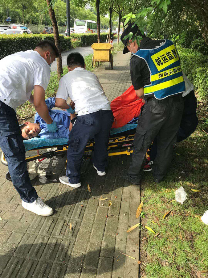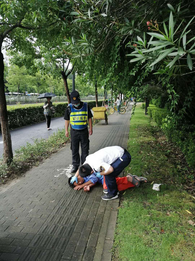 小宋意識(shí)到該男子可能是突發(fā)疾病,處于無意識(shí)狀態(tài)。于是就立即向城運(yùn)中心匯報(bào)情況,同時(shí)撥打了110報(bào)警電話和120急救電話。