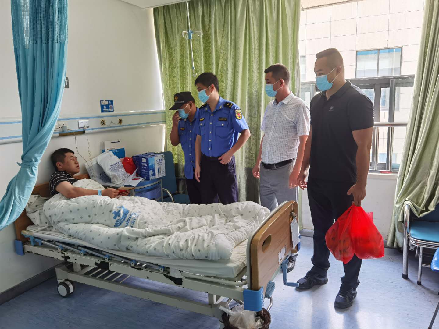 江局長和吳隊長對劉強的行為表示高度認可和贊揚,囑咐劉強安心養(yǎng)傷,早日康復,早日回到工作崗位。宗保公司董事長馮中保得知這一情況后,第一時間通過電話慰問劉強,并給予現(xiàn)金獎勵。