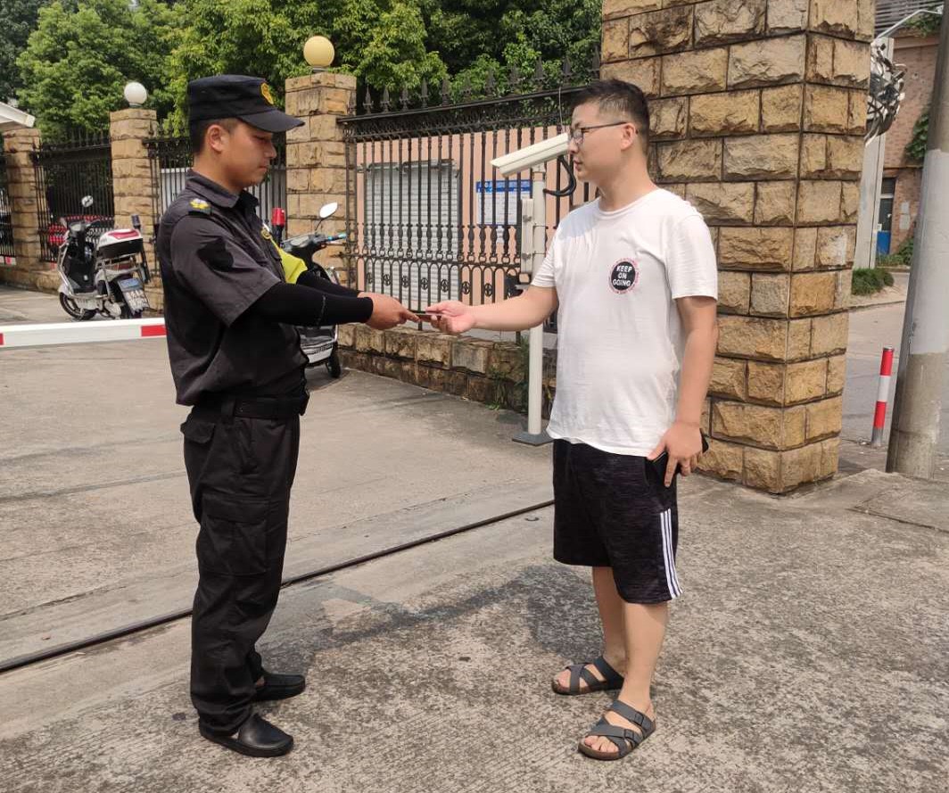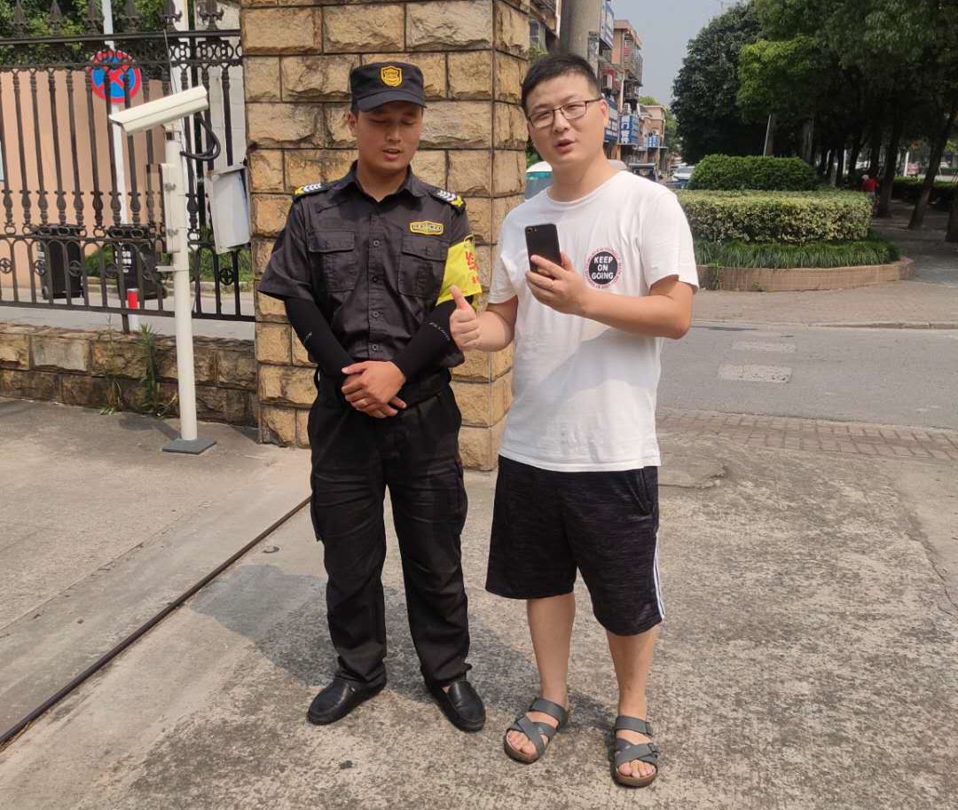 2020年7月25日,在東陸路某倉(cāng)庫(kù)門(mén)口上演了暖人的一幕,失主劉先生拿著失而復(fù)得的手機(jī)激動(dòng)萬(wàn)分,對(duì)宗保公司金橋市容隊(duì)員張勇勇連聲致謝。