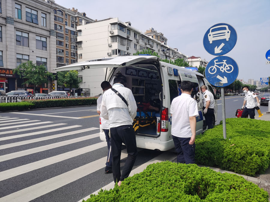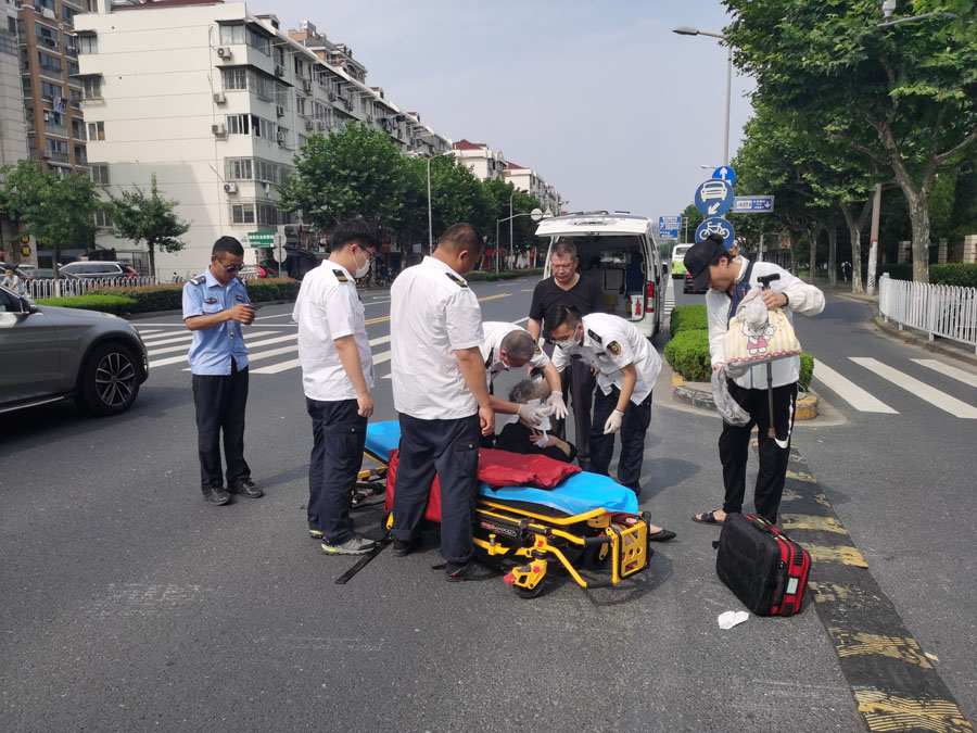 隨后,聯(lián)系莘松派出所,撥打120急救電話。期間,兩人一直安撫受傷老人,幫助他聯(lián)系家人。待民警和急救車到達(dá)后,幫助醫(yī)務(wù)人員把老人抬上救護(hù)車,并配合民警做好事故處理。