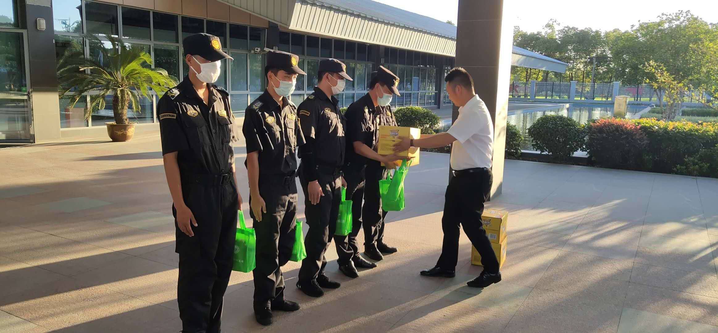公司駐金奉區(qū)域經(jīng)理茍青安代表公司對(duì)鎮(zhèn)領(lǐng)導(dǎo)的慰問表示感謝,并將鎮(zhèn)領(lǐng)導(dǎo)的慰問和關(guān)懷送到每位集中隔離看守點(diǎn)和一線崗位上的隊(duì)員,要大家在戰(zhàn)高溫做好防暑降溫的同時(shí),不辜負(fù)領(lǐng)導(dǎo)的關(guān)心和愛護(hù),圓滿完成好集中隔離人員的看護(hù)任務(wù)。