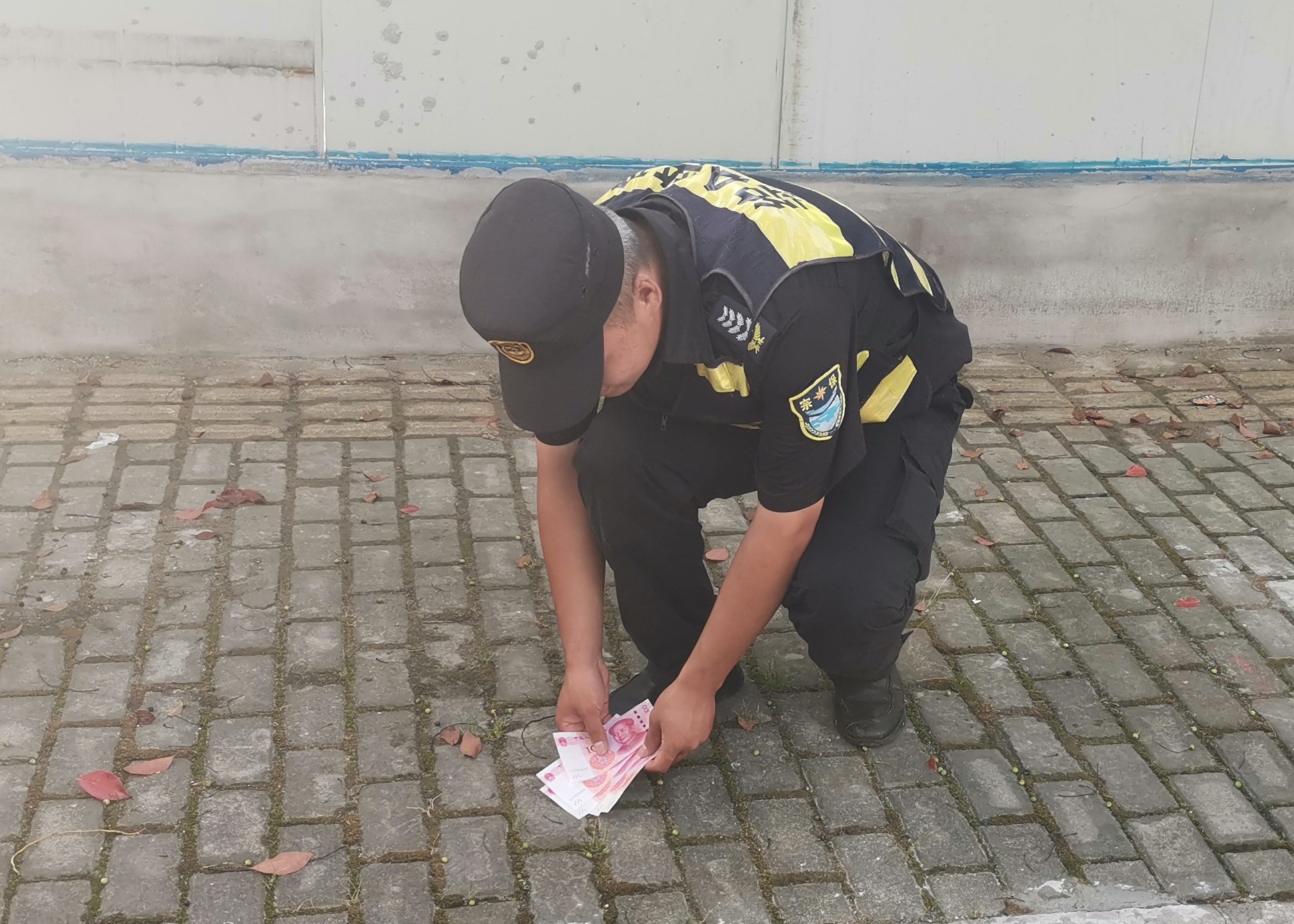 7:30,張斌、劉學(xué)龍巡邏到行南路萊陽路東側(cè)10米處發(fā)現(xiàn)地上有500元現(xiàn)金,隊(duì)員張斌撿起,觀察了一下附近,沒有發(fā)現(xiàn)失主。兩名隊(duì)員便把情況反映給帶班組長王東錄,得到指示在原地等待。