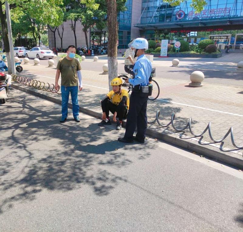 龔二龍、胡靜見(jiàn)狀一邊立即上報(bào)帶隊(duì)負(fù)責(zé)人,一邊疏導(dǎo)指揮交通。張繼則查看外賣小哥傷情,安撫其情緒,對(duì)現(xiàn)場(chǎng)進(jìn)行拍照取證。所幸外賣小哥傷勢(shì)不嚴(yán)重。