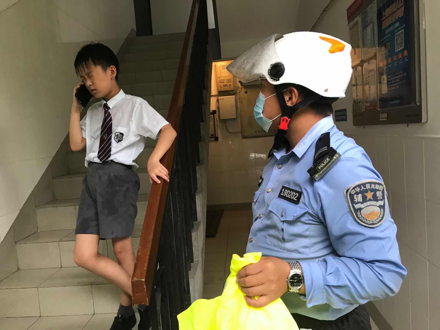 征得該學(xué)生同意,問清了他的具體家庭地址后,王軻使用巡邏電動車將該名學(xué)生護(hù)送至家中,待其母親回家后才離開。離開前,還不忘叮囑盡快把濕衣服換掉,喝點(diǎn)熱茶以免著涼。
