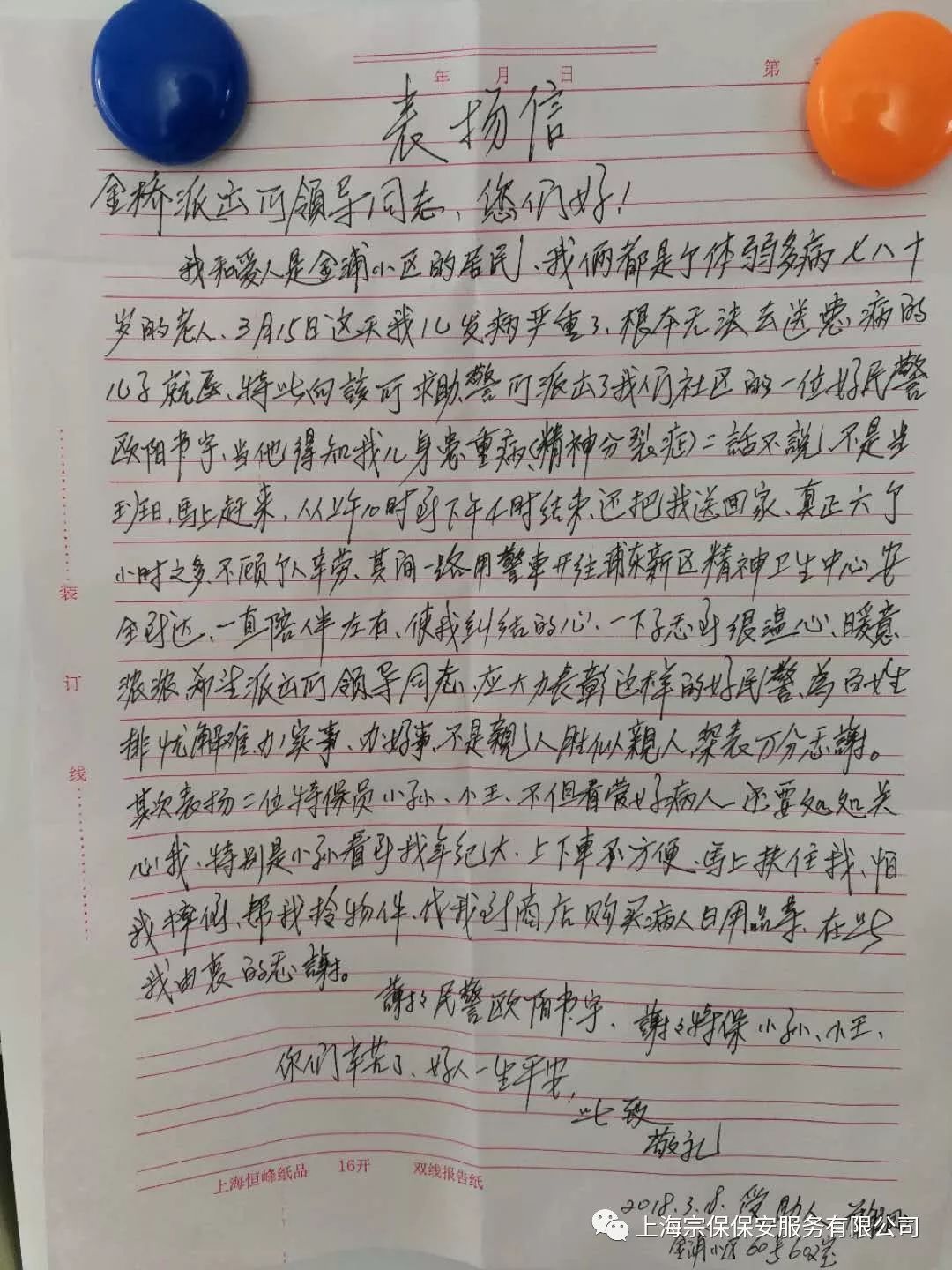 第二天清晨,老太太特意去金橋派出所送去表揚信,感謝兩位隊員對自己的幫助。