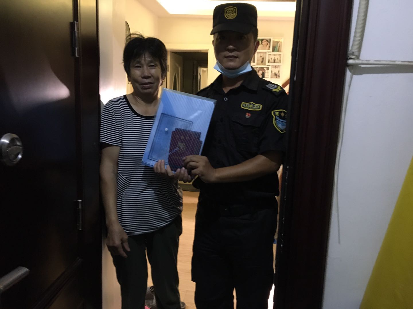 兩位隊員想到失主丟失了證件,一定很著急,便按照戶口本上的地址尋找。功夫不負有心人,終于找到失主,經(jīng)過核實確認后,將文件袋還給了失主。