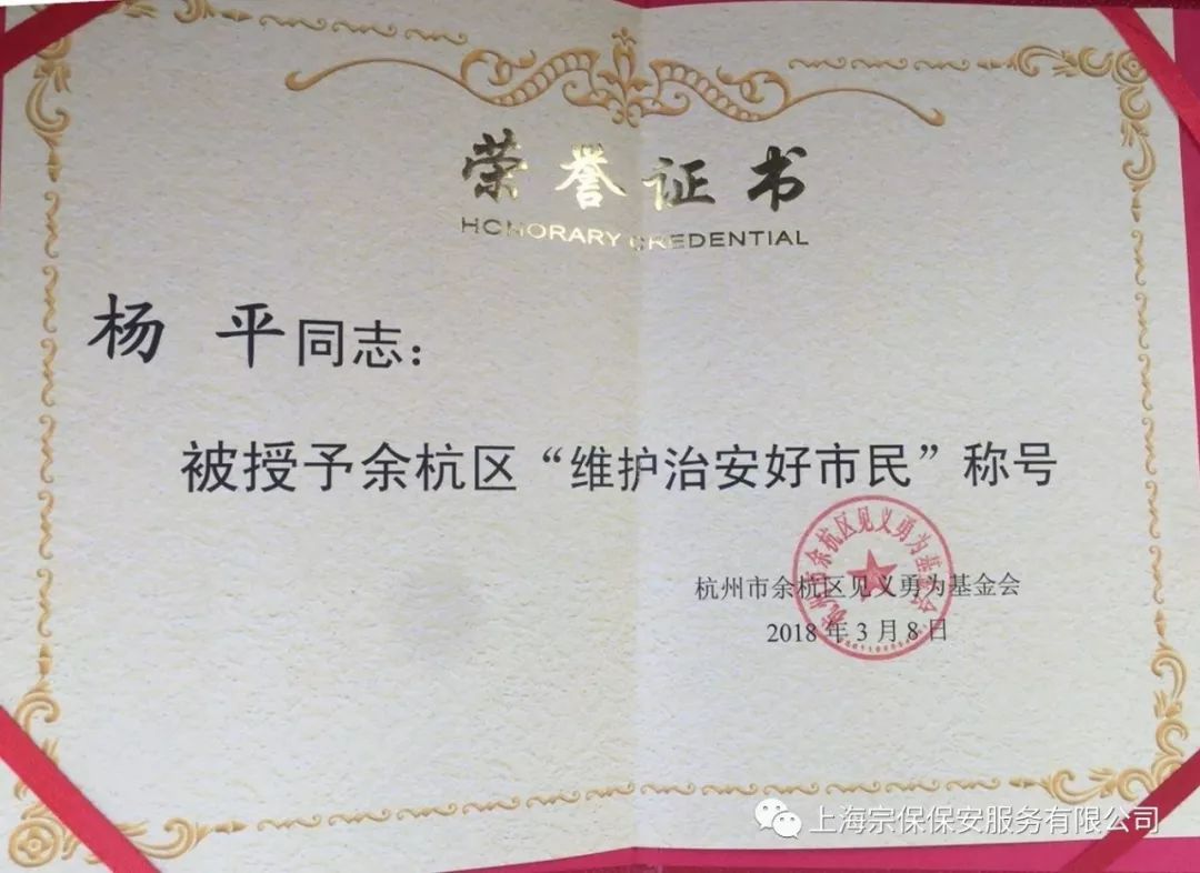 余杭區(qū)“維護(hù)治安好市民”榮譽(yù)稱號(hào)