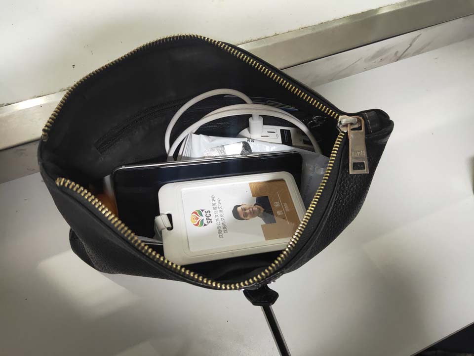 當(dāng)天19:37,王琦在出發(fā)層25號(hào)門前巡邏時(shí),撿到一個(gè)手提包,便立即上報(bào)當(dāng)班領(lǐng)導(dǎo)。為了尋找失主的聯(lián)系方式,王琦打開執(zhí)法記錄儀錄像取證,經(jīng)清點(diǎn)包內(nèi)有手機(jī)、充電寶、幾張銀行卡等物品。