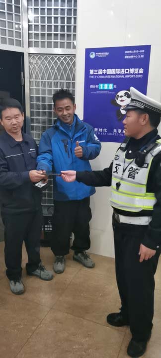 半小時(shí)過去了,仍無人前來尋找,溫玉林便上報(bào)帶班骨干,將手機(jī)送交到虹橋派出所,并向值班民警說明情況。之后,溫玉林返回崗位繼續(xù)執(zhí)勤!