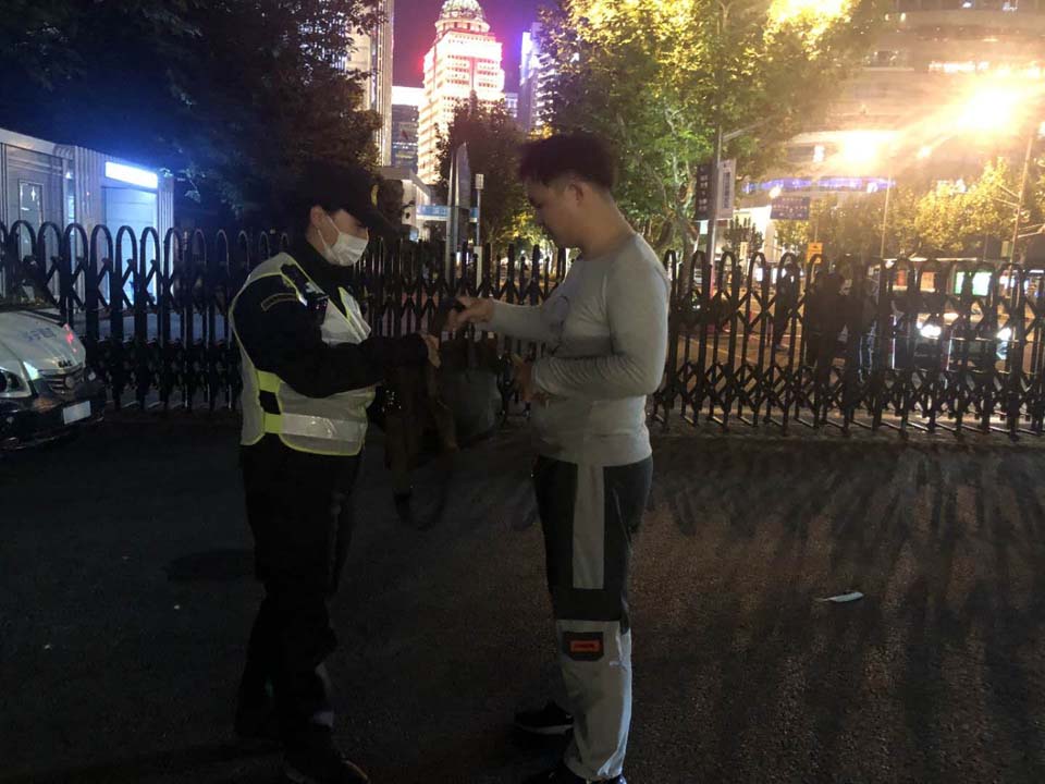 半小時(shí)后,失主打來電話約定好碰面地址。不一會(huì)兒,一個(gè)外國(guó)友人急匆匆地趕過來,核對(duì)無誤后隊(duì)員將手機(jī)交還失主。失主拿到手機(jī)后,對(duì)宗保隊(duì)員一再表示感謝。