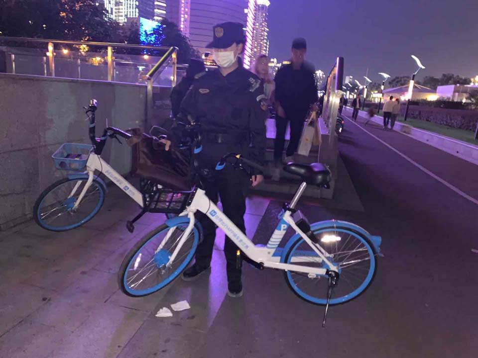 當(dāng)天9:00左右,肖金柱在高科西路浦三路口擺放亂停放的共享單車時(shí),在車框里發(fā)現(xiàn)一個(gè)單間挎包,無人認(rèn)領(lǐng)??紤]到失主會(huì)回來尋找,肖金柱便在現(xiàn)場(chǎng)一邊整理單車,一邊耐心等待失主。