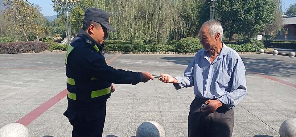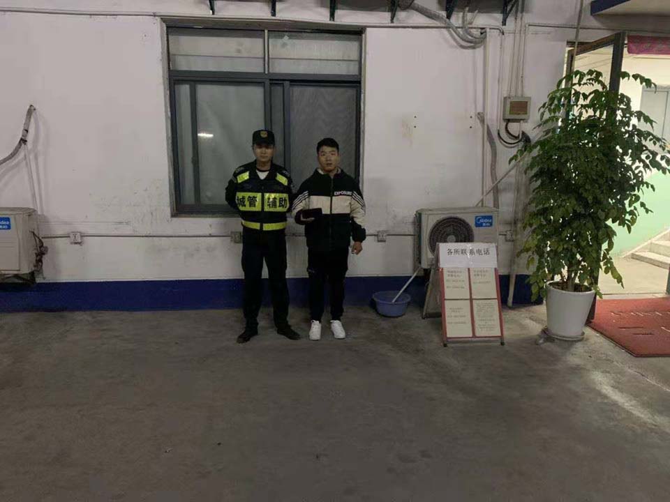 10月30日,宗保公司駐周浦市容項(xiàng)目隊(duì)員楊珂賀撿到錢包歸還失主,獲得好評(píng)。