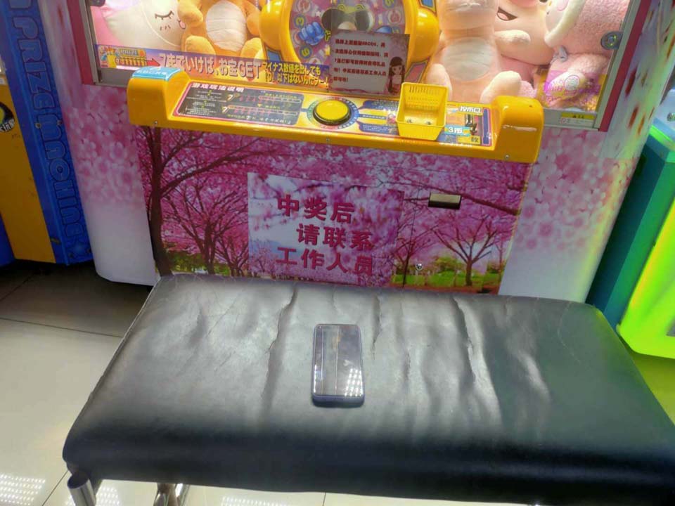 當(dāng)日13:35,尚娟在周浦萬達(dá)廣場(chǎng)巡邏到商場(chǎng)2樓大玩家游樂場(chǎng)時(shí),發(fā)現(xiàn)一部手機(jī)遺落在一個(gè)長(zhǎng)凳上,考慮到失主肯定很著急,便在現(xiàn)場(chǎng)等待。