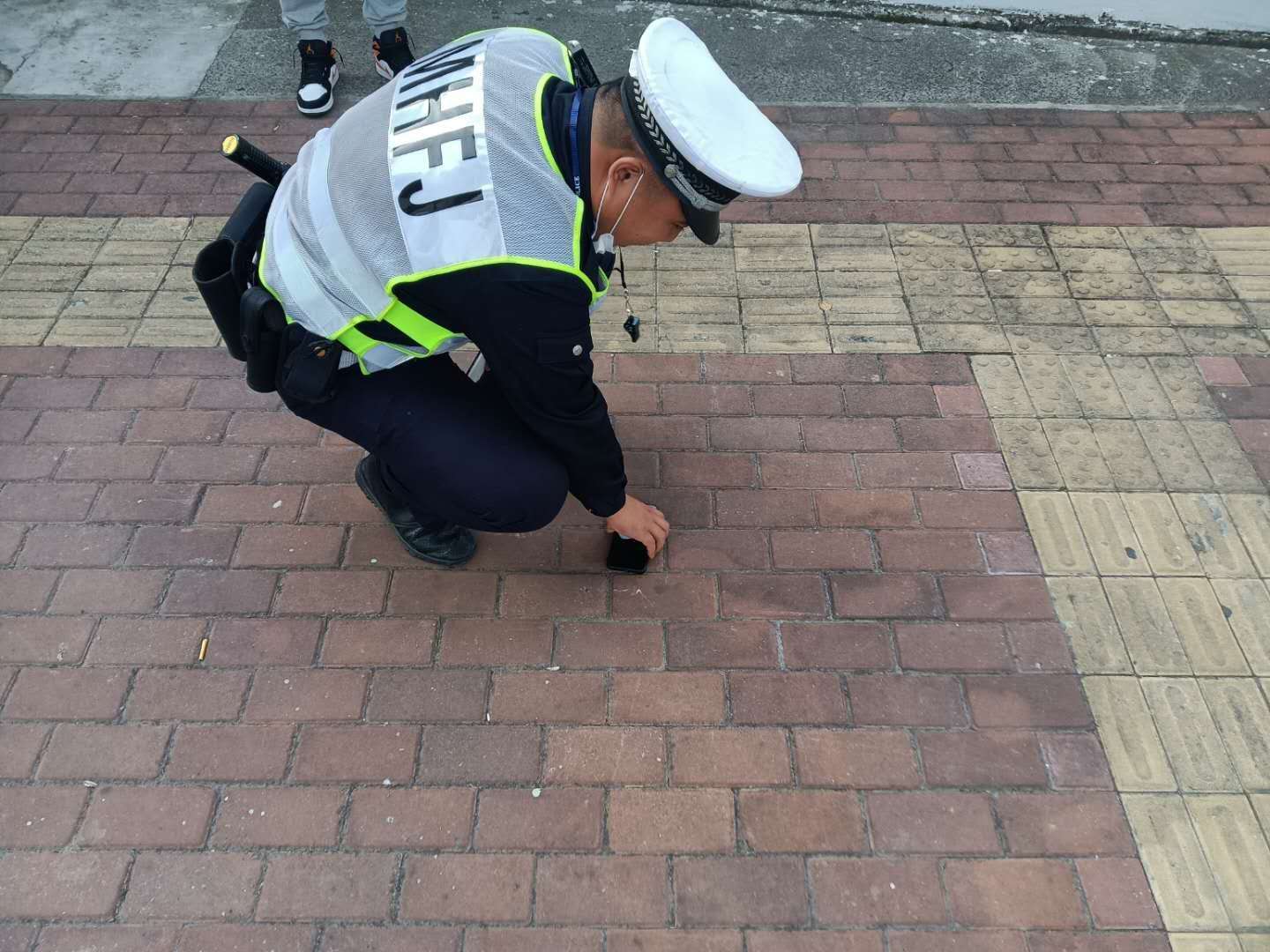 當(dāng)天7:10左右,李占明在北翟路華江路路口值勤時(shí)撿到一部手機(jī),便立即報(bào)告項(xiàng)目隊(duì)長(zhǎng),主動(dòng)聯(lián)系失主過來取手機(jī)。隊(duì)長(zhǎng)到達(dá)現(xiàn)場(chǎng),拍照取證后和李占明一起在原地等待。