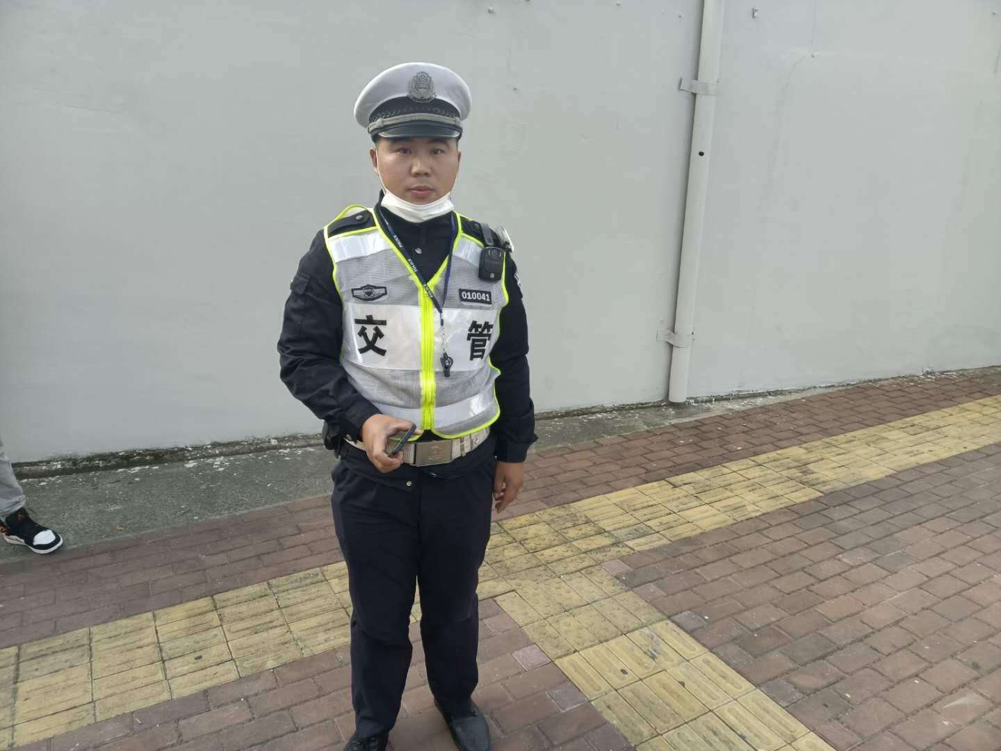 當(dāng)天16:30左右,付志勇在莘松西環(huán)路口值勤時(shí),撿到一部手機(jī),因手機(jī)設(shè)有開機(jī)密碼,無法獲取失主的聯(lián)系電話,便在路口邊維持交通秩序,邊等待失主主動(dòng)聯(lián)系。