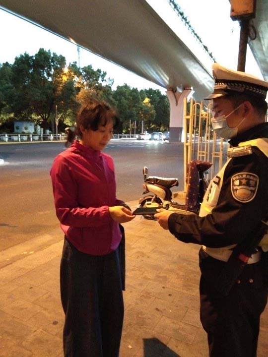 15分鐘后,一位阿姨急匆匆地趕到單車跟前,情緒非常激動(dòng),聲稱錢、手機(jī)都在包里。確認(rèn)阿姨是失主后,隊(duì)員將錢包歸還給阿姨,阿姨一再向隊(duì)員表示感謝。