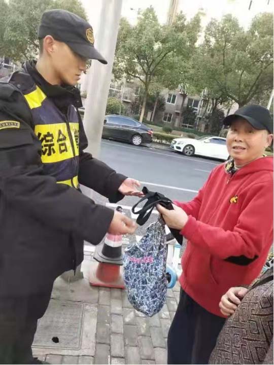 12月5日,宗保公司駐三林市容項(xiàng)目隊(duì)員李三沅撿到包歸還失主,受到好評(píng)。
