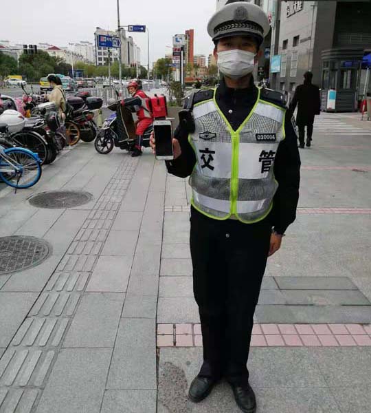 輔警巡邏撿手機(jī) 物歸原主品行高—虹橋交管輔警項(xiàng)目隊(duì)員撿到手機(jī)
