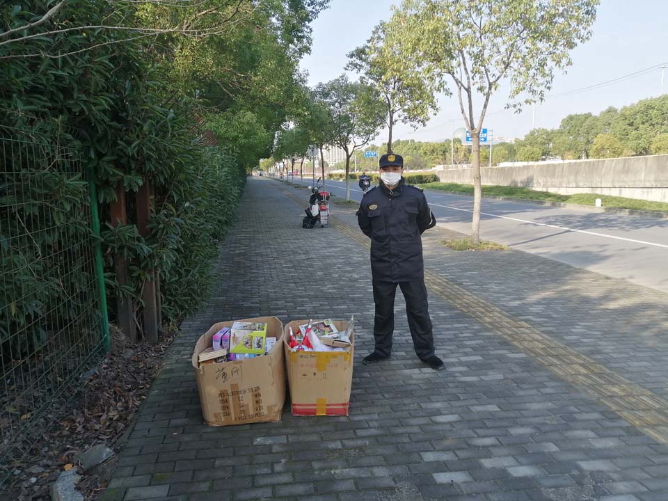 當(dāng)天9:00,張晶晶在拱極東路學(xué)海路巡邏時(shí),發(fā)現(xiàn)人行道上有兩箱包裝完好的玩具,預(yù)估價(jià)值在500元左右。想著失主可能會(huì)回來(lái)尋找,張晶晶便守在原地。