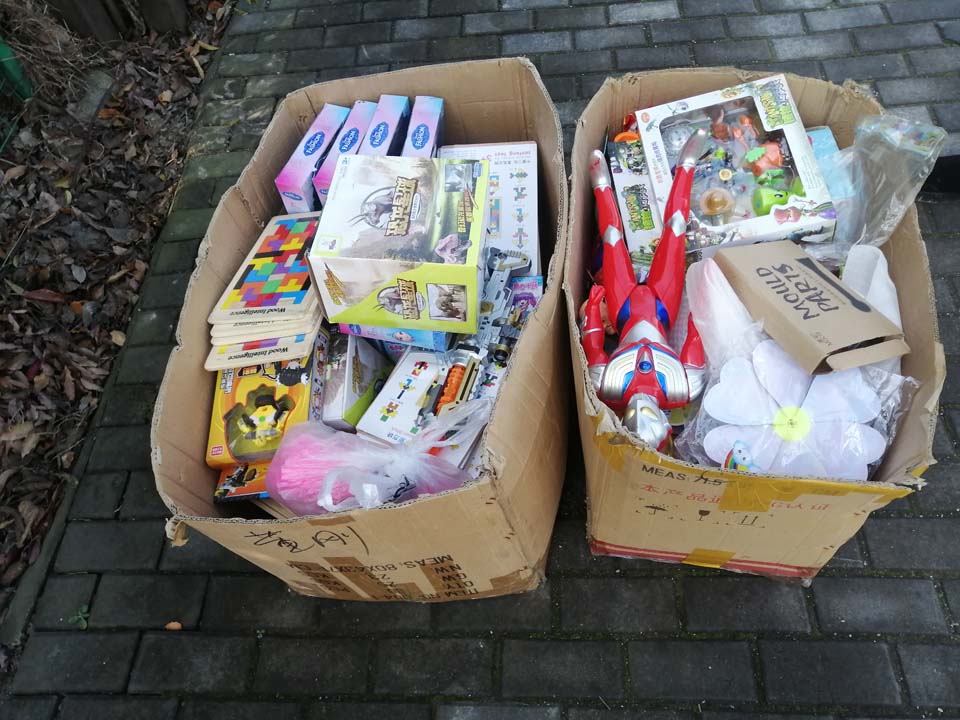 惠南網(wǎng)格項(xiàng)目隊(duì)員撿到兩箱玩具